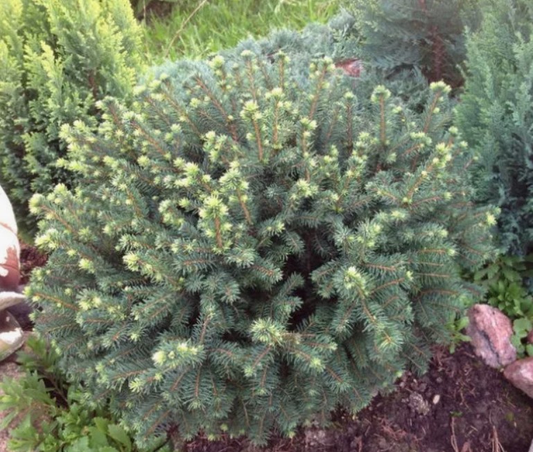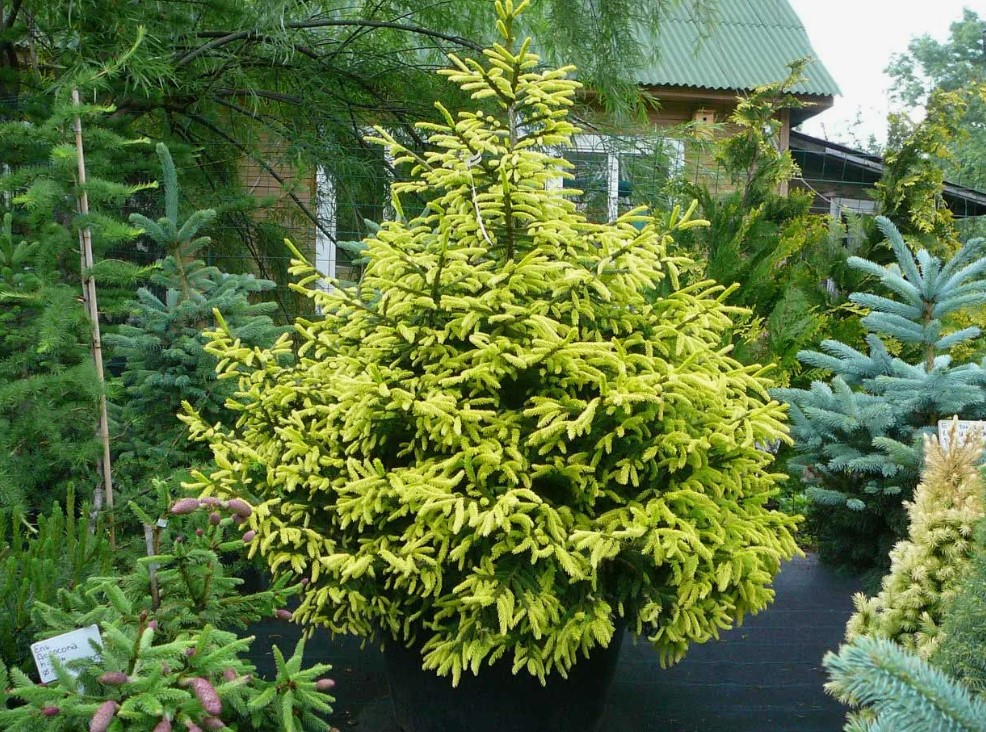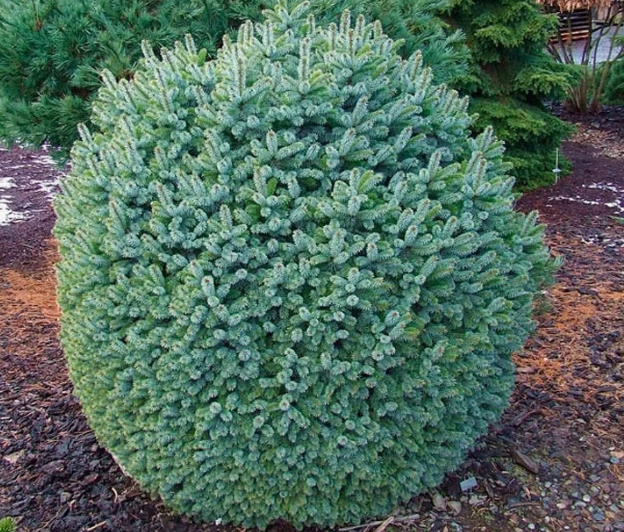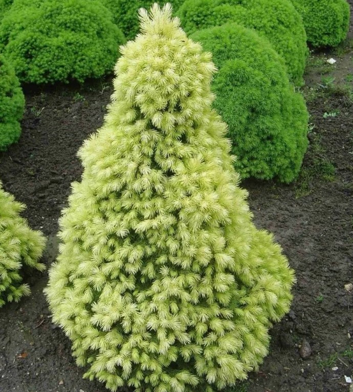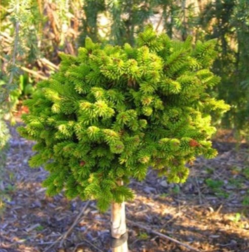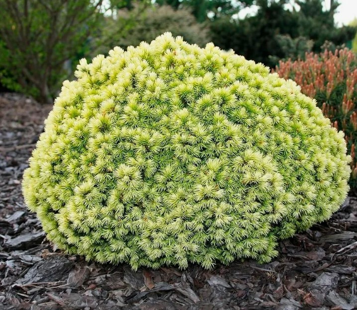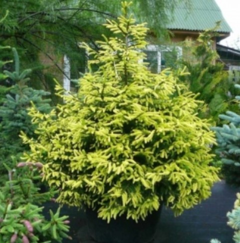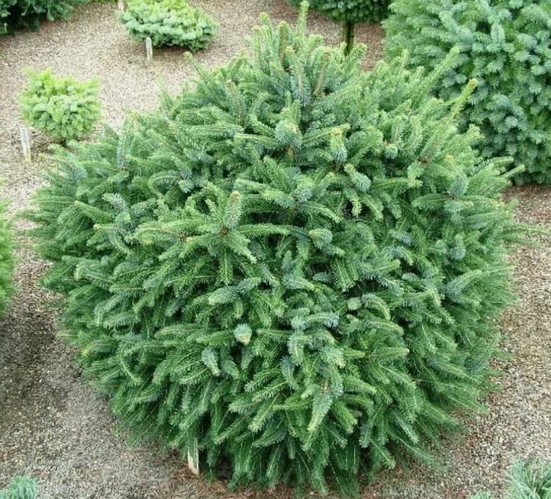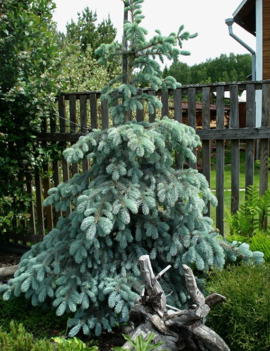 - конична или сферична - тази форма е типична за бавнорастящи декоративни смърчови дървета;