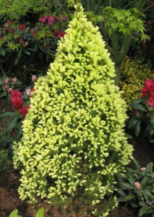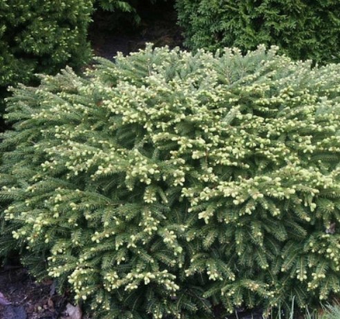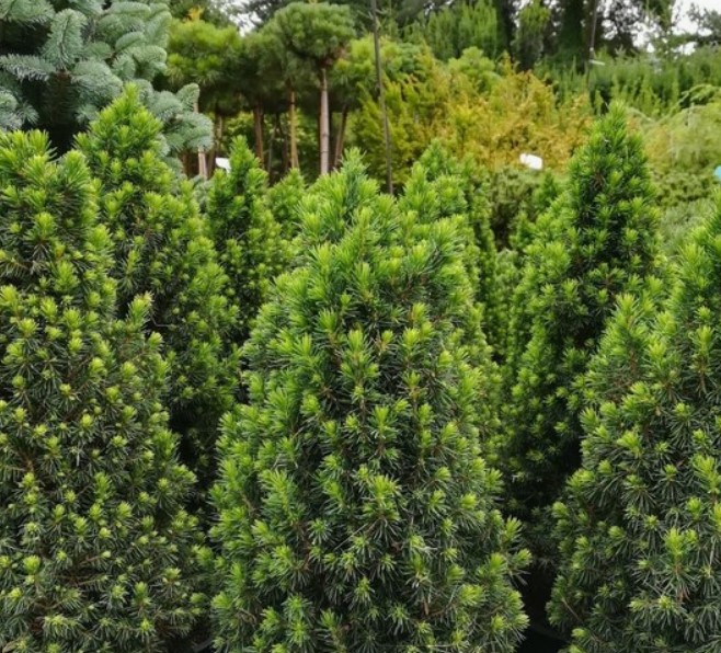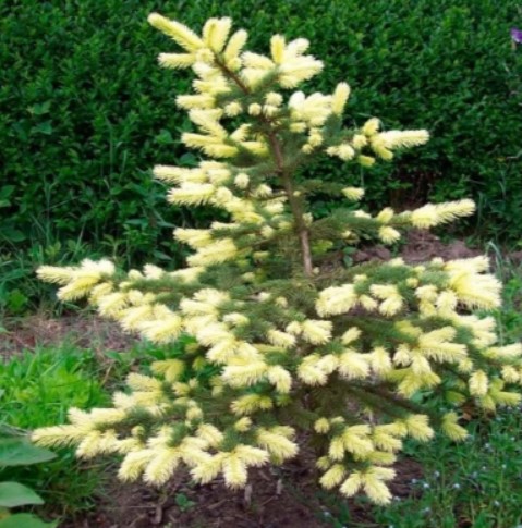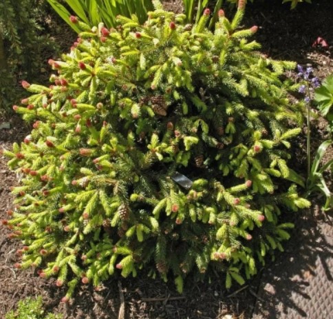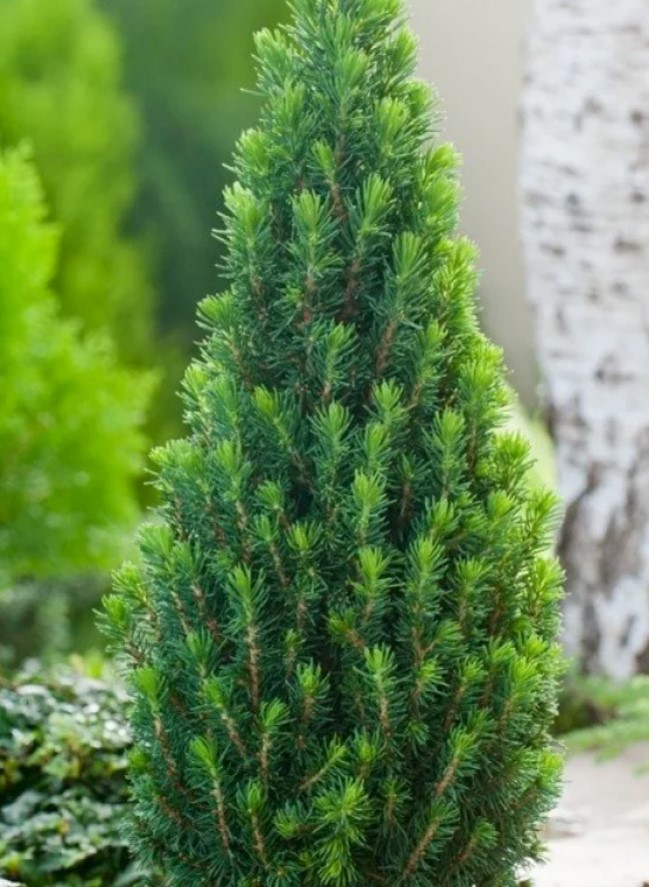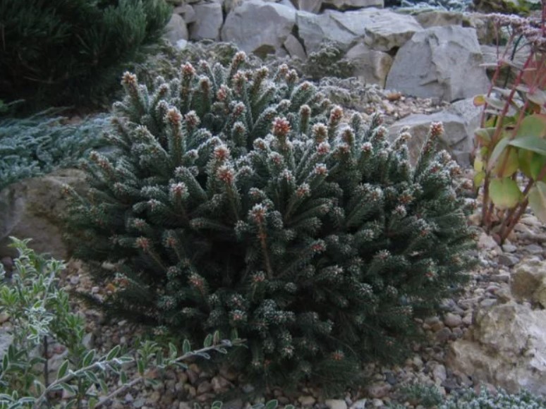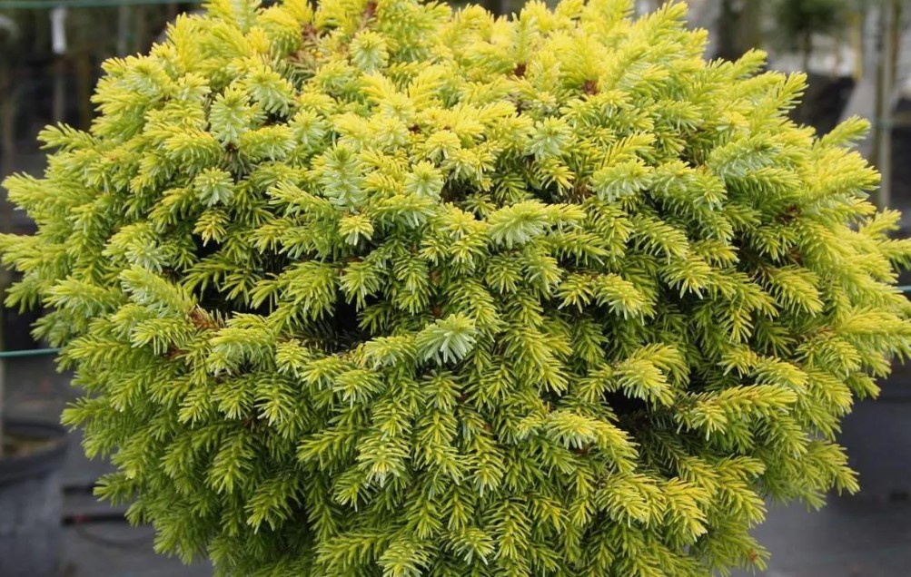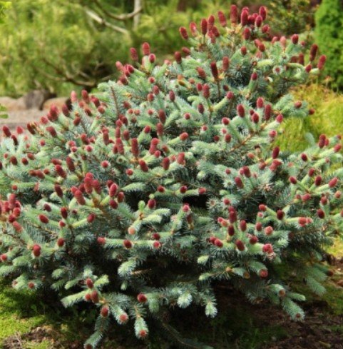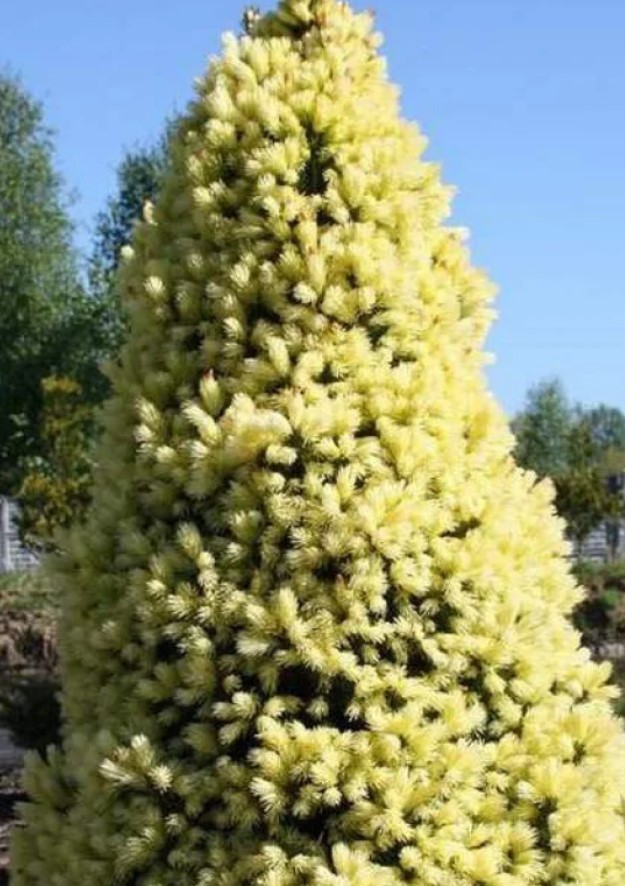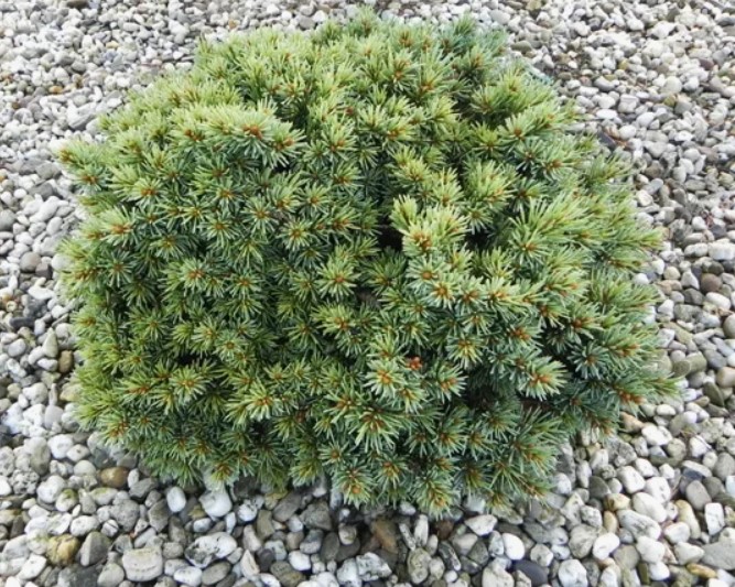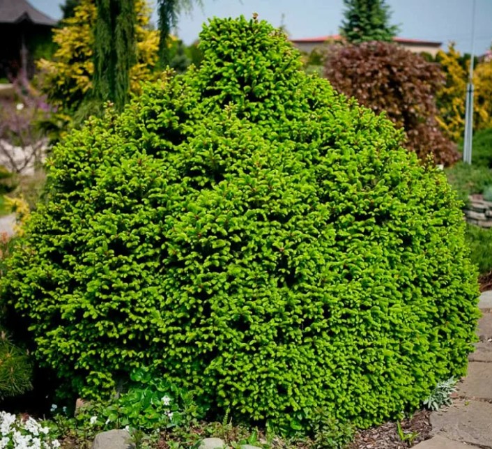 - конична или сферична - тази форма е типична за бавнорастящи декоративни смърчови дървета;