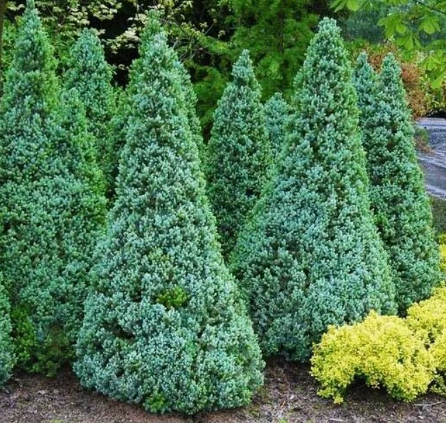 | Син диамант | Широко конична; 6 м/2 м; 20-30 см;