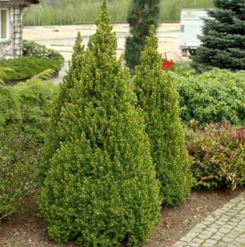 За индивидуални засаждания най-често се използват смърчове с пирамидална форма. Конусовидни или сферични смърчове са подходящи за художествени композиции.
