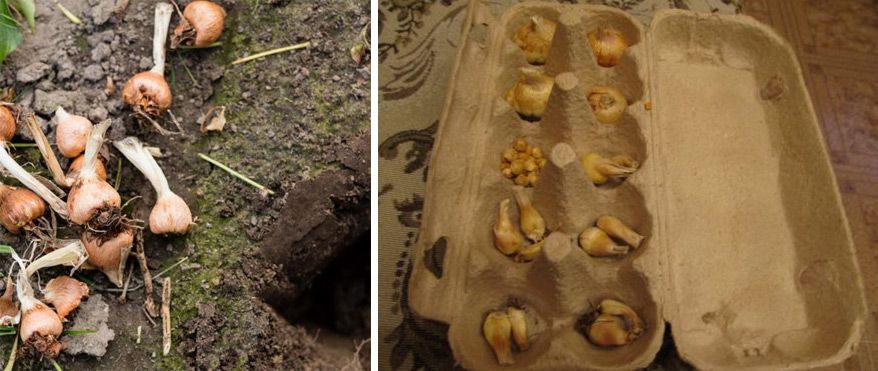 Σε περιοχές με κρύους, μεγάλους χειμώνες, ξεθάψτε τους βολβούς με μια μεγάλη μπάλα ρίζας, προσέχοντας να μην τους καταστρέψετε. Στη συνέχεια, αφαιρέστε το χώμα, επεξεργαστείτε τους με μυκητοκτόνο (για την πρόληψη της μούχλας και της σήψης) και αφήστε τους να στεγνώσουν σε ένα καλά αεριζόμενο δωμάτιο για περίπου ένα μήνα.