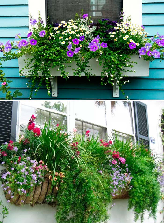 Ένα πλούσιο, ζωντανό κουτί που αναμφίβολα θα τραβήξει την προσοχή των γύρω σας μπορεί να γεμίσει με πλούσια ανθισμένα φυτά, όπως ποικιλόχρωμο κολεό, καλιμπράχοα (ξάδερφος της πετούνιας με ελαφρώς μικρότερα άνθη), μυρτιά και σπαράγγια.