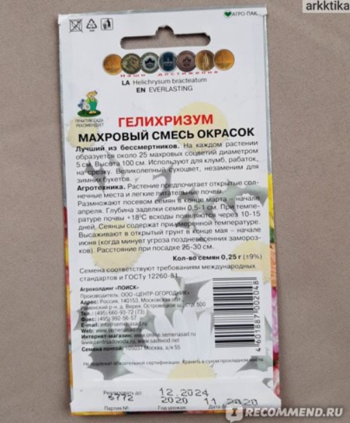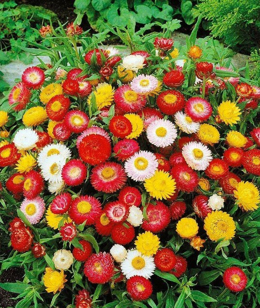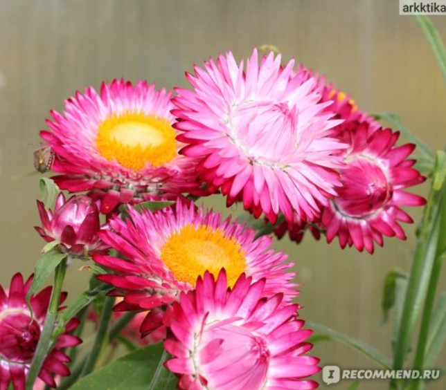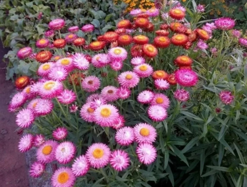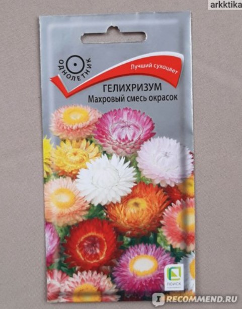 Ενθουσιάστηκα με τον ελίχρυσο από την Agroholding Poisk. Ο κατασκευαστής δεν με απογοήτευσε με τη γέμιση. Τα άνθη πραγματικά φύτρωσαν σε μια μεγάλη ποικιλία χρωμάτων, πιθανώς κάθε πιθανή απόχρωση αντιπροσωπευόταν. Εκτίμησα την ποικιλομορφία. Οι σπόροι βλάστησαν καλά. Αλλά το πιο σημαντικό, ο ελίχρυσος επέζησε και άνθισε άφθονα σε δύσκολες συνθήκες ελάχιστης φροντίδας και ανεπαρκούς ποτίσματος.
