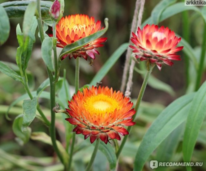 Το χειμώνα, αγόρασα σπόρους Helichrysum bracteatum. Αυτό το πολυετές φυτό στην πατρίδα του, την Αυστραλία, καλλιεργείται ως ετήσιο στον κήπο μας και είναι καλύτερο να το κάνουμε από σπορόφυτα. Το φυτό έχει ένα ίσιο, πυκνά φυλλωμένο στέλεχος ύψους έως 100 εκατοστά, σύμφωνα με τη συσκευασία των σπόρων, αλλά το δικό μου έχει φτάσει τα 150 εκατοστά. Ο στέλεχος είναι διακλαδισμένος και οι κεφαλές των λουλουδιών είναι τεράστιες, με διάμετρο έως 5 εκατοστά. Τα εσωτερικά φυλλάρια είναι έντονα χρωματισμένα, σε ποικιλία χρωμάτων, εκτός από το μπλε.