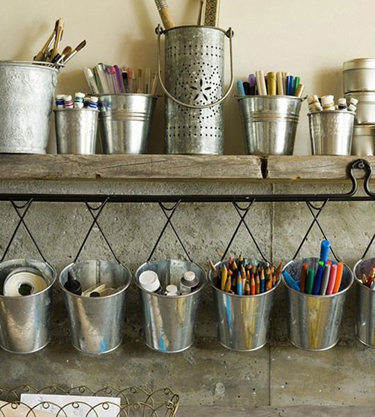Μπορείτε να διακοσμήσετε δημιουργικά έναν παλιό κουβά, να του βάλετε ετικέτες ή να κολλήσετε πάνω του γράμματα κομμένα από περιοδικά και εφημερίδες, και θα έχετε εύχρηστα δοχεία για την αποθήκευση διαφόρων απαραίτητων ειδών κηπουρικής—εργαλεία, λιπάσματα και πολλά άλλα χρήσιμα πράγματα—τα οποία τώρα θα συγκεντρώνονται σε ένα μέρος.