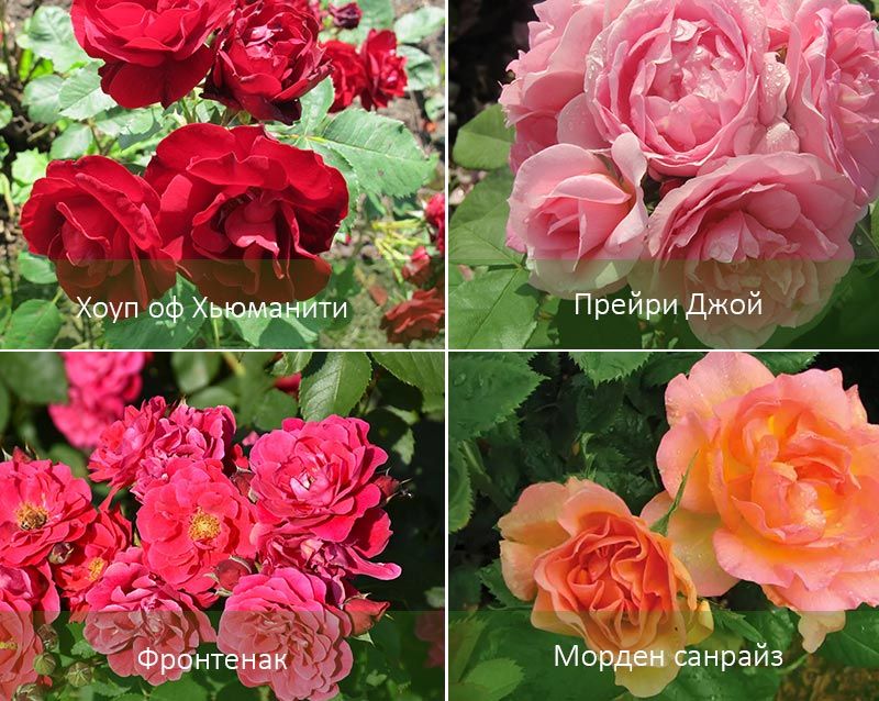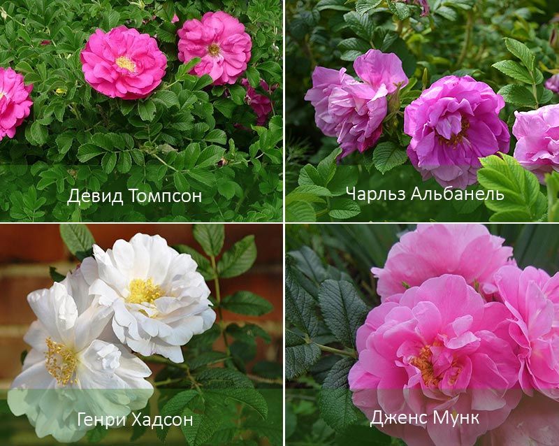 - Θάμνος πάρκου. Αυτά περιλαμβάνουν: Champlain, Royal Edward, J.P. Connell, Alexander Mackenzie, Frontenac, George Vancouver, Simon Fraser, Lewis Joliet, Lambert Closse.