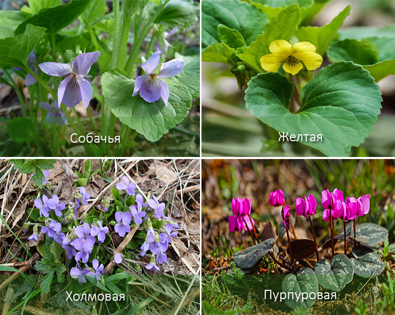 | Ντουμπράβναγια (βουνό) | Στο ευρωπαϊκό τμήμα της Ρωσίας, στους πρόποδες των βουνών του Καυκάσου, στα νότια της Σιβηρίας. | Ανοιχτό μπλε, παρόμοιο με τα άνθη της σκυλοβιολέτας, αλλά μεγαλύτερο, και το στέλεχος είναι ψηλότερο - έως 25 cm. | Μάιος – Ιούλιος. |