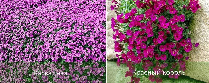 Aubrieta cultorum. Ανέχεται πολύ καλά το χειμώνα κάτω από το χιόνι. Αναπτύσσεται έως και 20 εκ. Αυτό το είδος μπορεί να καλλιεργηθεί σε γλάστρες για μοσχεύματα. Τα φύλλα είναι επιμήκη και οδοντωτά. Τα άνθη είναι μονά, διπλά και ημίδιπλα.