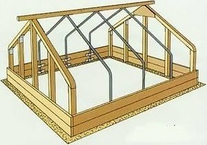Ας ρίξουμε μια πιο προσεκτική ματιά στο πώς να κατασκευάσουμε ένα πλαίσιο για ένα θερμοκήπιο με αέτωμα χρησιμοποιώντας: