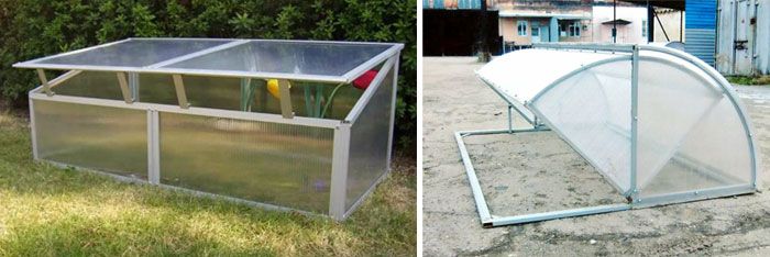 Το πλαίσιο μπορεί επίσης να κατασκευαστεί από σωλήνες PVC, να λυγίσει σε σχήμα καμάρας και να ασφαλιστεί με φύλλα πολυανθρακικού στην κορυφή. Ωστόσο, με αυτόν τον τύπο κατασκευής, θα είναι αρκετά δύσκολο να διασφαλιστεί ότι οι πόρτες ανοίγουν σωστά.