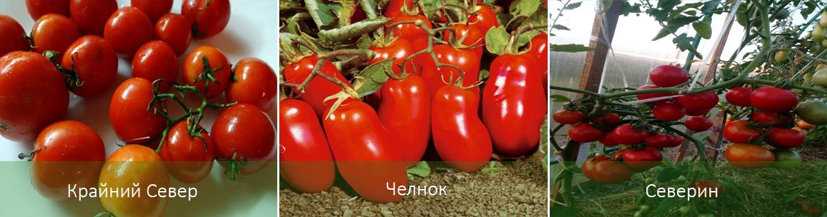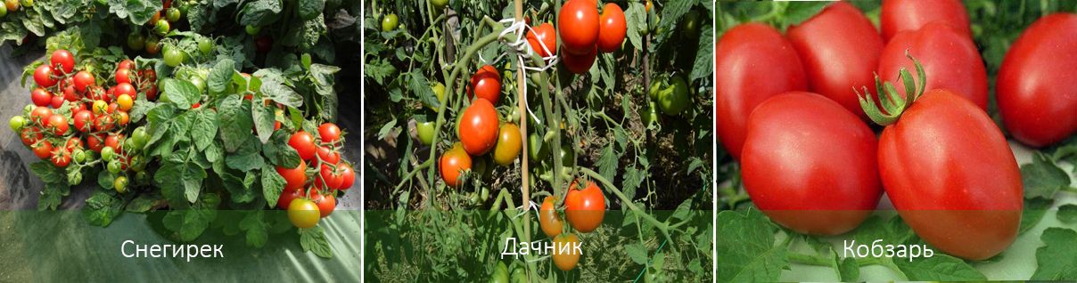 Μεταξύ των ντοματών για ανοιχτό έδαφος, ξεχωρίζουν οι ακόλουθες ποικιλίες, οι καρποί των οποίων χρησιμοποιούνται ευρέως στην κονσερβοποίηση: Oblostitel, Varvara, Evgeniya, Anyuta, Skorospelki Nevskie 7.