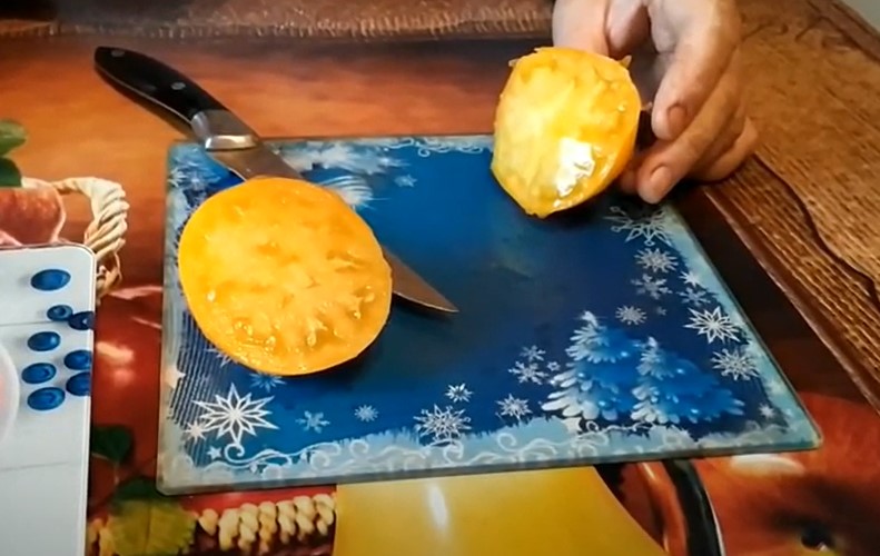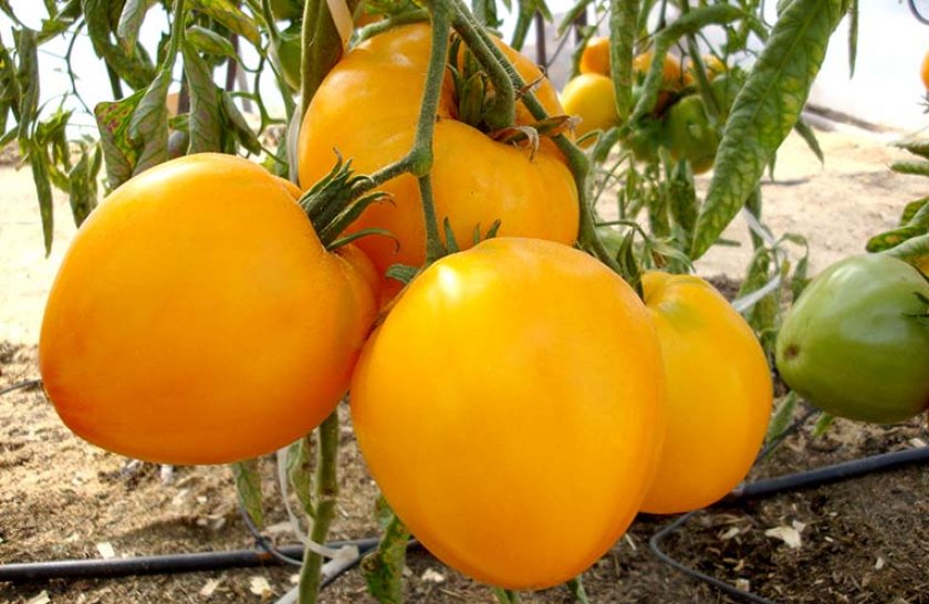 Μια μεσοπρώιμη τυπική απροσδιόριστη ποικιλία για θερμοκήπια. Κατάλληλη για σαλάτες και χυμούς. | Στρογγυλό, πεπλατυσμένο, ελαφρώς ραβδωτό, κίτρινο, 500 γρ. Καλή γεύση. |