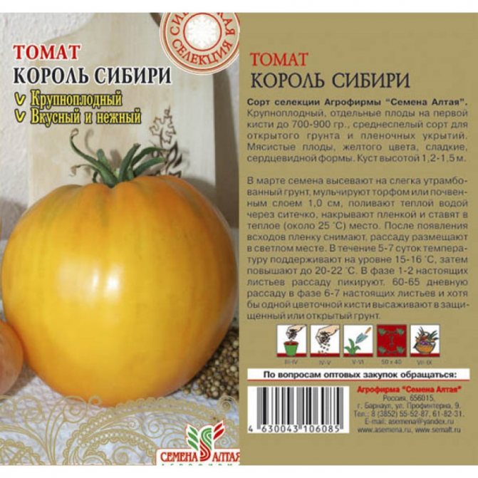 Η ντομάτα King of Siberia χαρακτηρίζεται από υψηλές αποδόσεις και μεγάλους καρπούς. Η καλλιέργειά της απαιτεί μικρή προσπάθεια από τους κηπουρούς, καθώς έχει ισχυρό ανοσοποιητικό σύστημα.