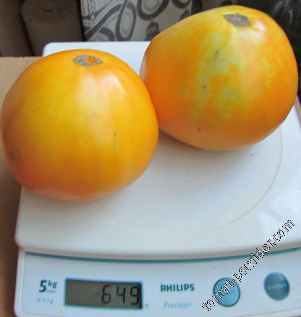 Πολύ μεγάλα φρούτα, αν σχηματίσετε μια ντομάτα σε ένα στέλεχος, μπορείτε να πάρετε τα πρώτα φρούτα πάνω από 500 γραμμάρια.