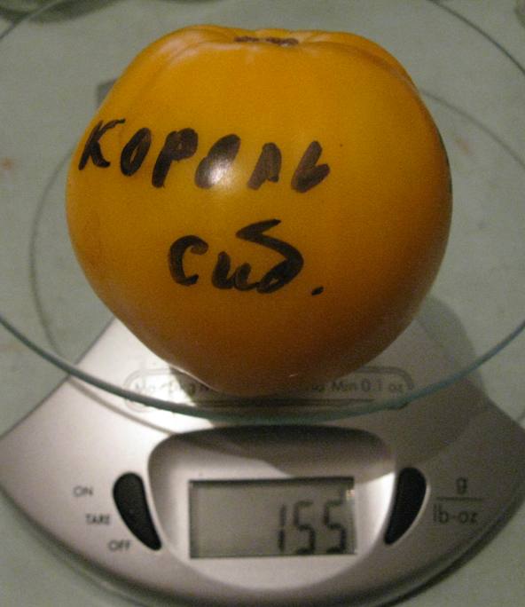 Σπόροι από το SibSad. Η ποικιλία διαφημίζεται ως σε σχήμα καρδιάς, αλλά η δική μου είναι πιο στρογγυλή. Ο θάμνος έχει ύψος 1,2 μ. στο ανοιχτό έδαφος. Παράγει αρκετά άφθονους καρπούς. Οι καρποί είναι πορτοκαλοκίτρινοι, ζουμεροί και έχουν καλή γεύση με μια ελαφριά γλυκύτητα, αλλά υπάρχουν και καλύτεροι. Οι καρποί έχουν περίπου το ίδιο μέγεθος, με 5-7 ανά τσαμπί, που ζυγίζουν όχι περισσότερο από 200 γραμμάρια. Υποψιάζομαι έντονα ότι αυτός δεν είναι ο Βασιλιάς της Σιβηρίας. Έχω κρατήσει μερικούς για σπόρους, αλλά θα το ξανασκεφτώ πριν το φυτέψω.