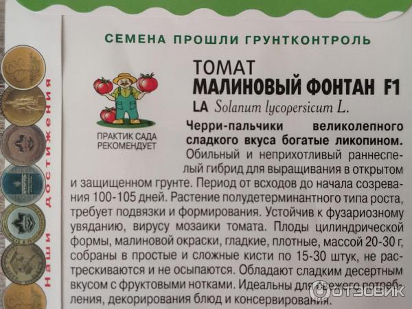 Αυτή η ποικιλία ντομάτας ονομάζεται "Raspberry Fountain". Η ένδειξη "F1" δίπλα στο όνομα της ποικιλίας υποδεικνύει ότι αυτή η ντομάτα είναι υβρίδιο. Αυτό σημαίνει ότι δεν έχει νόημα να παίρνετε σπόρους από τη δική σας σοδειά, καθώς δεν θα μεταδώσουν τα χαρακτηριστικά της ποικιλίας τους.