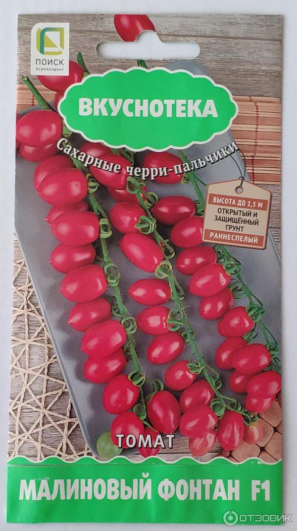 Η ντομάτα Raspberry Fountain είναι μια εφεύρεση Ρώσων καλλιεργητών από την γεωργική εταιρεία Poisk. Ένα δίπλωμα ευρεσιτεχνίας για την αναγνώρισή της κατατέθηκε το 2018, αλλά η ίδια η ντομάτα γεννήθηκε ακόμη νωρίτερα. Προστέθηκε στο μητρώο το 2020, έτσι πολλοί κηπουροί έχουν ήδη εκτιμήσει αυτές τις μικροσκοπικές ντομάτες σε σχήμα δακτύλου.