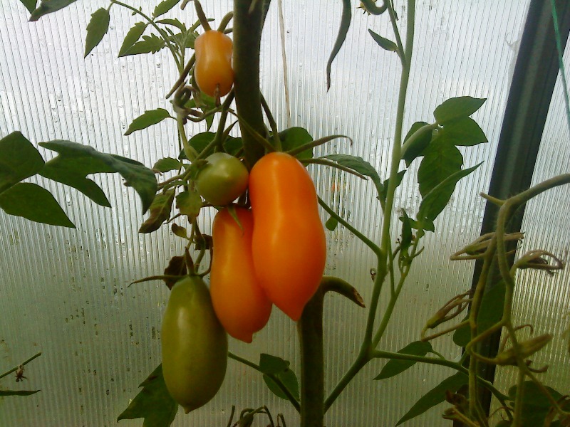 Αναπτύσσεται καλά σε ανοιχτό έδαφος. Σε ψυχρότερες περιοχές, μπορεί να φυτευτεί σε μη θερμαινόμενα θερμοκήπια. Αυτή η απροσδιόριστη, όψιμη ποικιλία φτάνει σε ύψος τα 200 cm. Απαιτεί πασσάλους και εκπαίδευση. Είναι κατάλληλη για σαλάτες και όλα τα είδη κονσερβοποίησης. | Οι καρποί είναι μικροί, ωοειδείς, με λεία, γυαλιστερή φλούδα. Η σάρκα και η φλούδα είναι πορτοκαλί, βάρους 120 γρ. Η γεύση είναι εξαιρετική. |