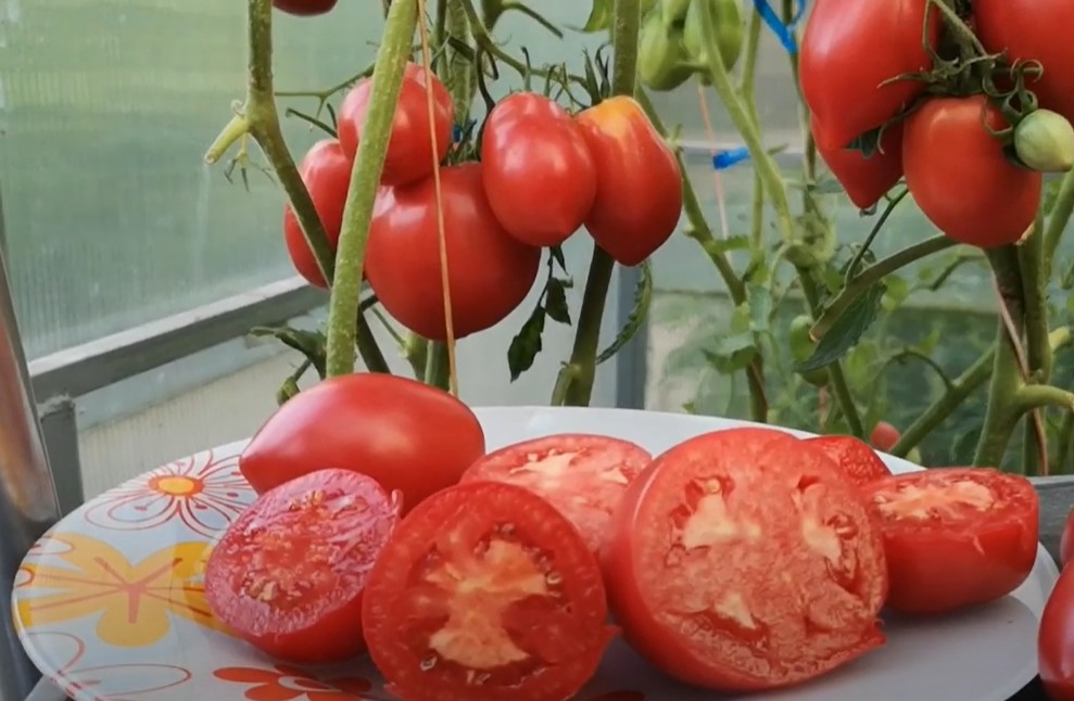 Μια ποικιλία μέσης εποχής, κατάλληλη για ανοιχτό έδαφος και θερμοκήπια. Κατάλληλη για σαλάτες, επεξεργασία σε προϊόντα ντομάτας και κονσερβοποίηση. | Σχήμα δαμάσκηνου, ελαφρώς ραβδωτό, ροζ-κόκκινο, 100-115 γρ. Η γεύση είναι καλή έως εξαιρετική. |