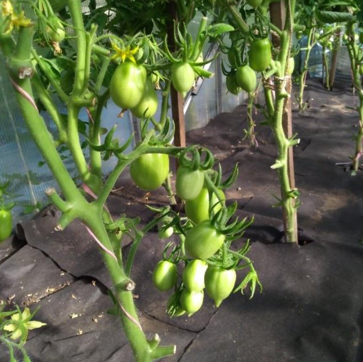 Ο θάμνος δεν είναι ψηλός και χρειάζεται τσίμπημα. Επειδή υπάρχουν τόσα πολλά φρούτα σε κάθε κλαδί, τα δένω πάντα. Είναι πολλή δουλειά, φυσικά, αλλά ο θάμνος πάντα ανταμείβει με έναν τεράστιο αριθμό ντομάτας.