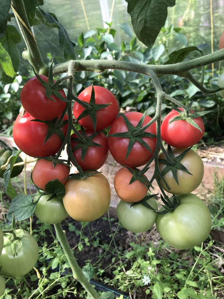 Μαζεύω ντομάτες όταν μόλις αρχίζουν να ροζίζουν (ή να γίνονται κοκκινοκίτρινες), ώστε το φυτό να μην σπαταλάει περισσότερη ενέργεια σε αυτές και να μπορεί να αρχίσει να αναπτύσσει νέους καρπούς. Χρειάζεται περίπου μία εβδομάδα για να αξιοποιήσουν πλήρως τις δυνατότητές τους οι ντομάτες που συγκομίστηκαν. Αυτή η ντομάτα ήταν η πρώτη που ωρίμασε. Φυσικά, θα μπορούσα να περιμένω άλλη μια ή δύο μέρες, αλλά δεν είχα την υπομονή—ήμουν τόσο πρόθυμη να τη δοκιμάσω.Οι ντομάτες είναι μεσαίου μεγέθους. Όλες έχουν περίπου το ίδιο μέγεθος και δεν μεγαλώνουν πολύ. Αυτό είναι πολύ βολικό, καθώς μπορείτε να τις φάτε όπως είναι και να τις αποθηκεύσετε εύκολα σε βάζο.