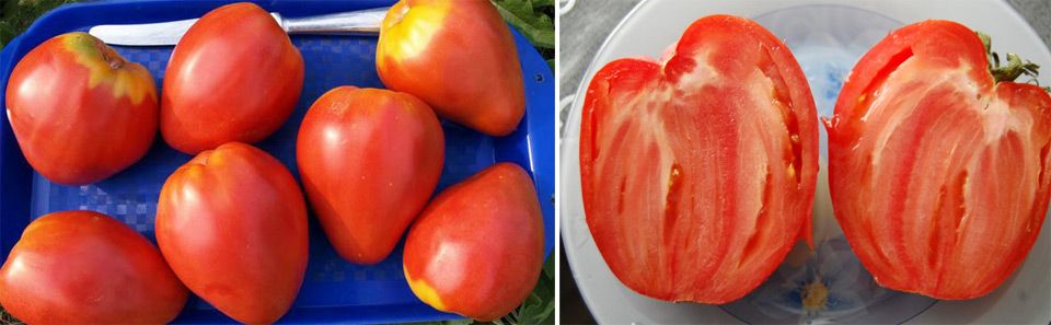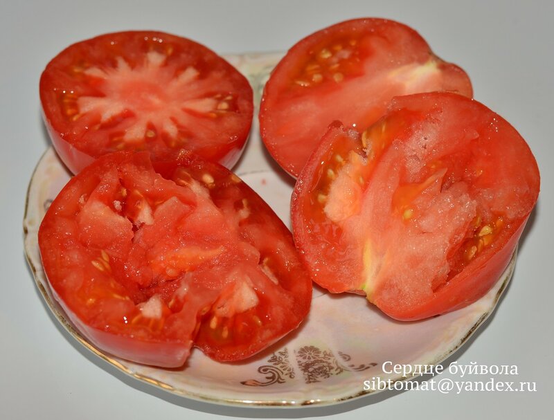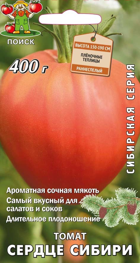 Αποφασιστική, μεγαλόκαρπη, κόκκινη, σε σχήμα καρδιάς και νόστιμη. Όπως πολλές ποικιλίες κηπουρικής της Σιβηρίας, ο θάμνος φαίνεται εύθραυστος. Ένα καλό καλοκαίρι ντομάτας στο ανοιχτό έδαφος μπορεί να αποφέρει μια αξιοπρεπή σοδειά.