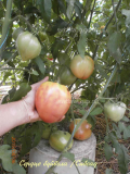 Οι περισσότερες ήταν μεγάλες και σε σχήμα καρδιάς. Υπήρχαν πολλές ντομάτες, και οι τελευταίες ήταν μικρότερες σε μέγεθος από τις πρώτες, αλλά αρκετά βαριές.