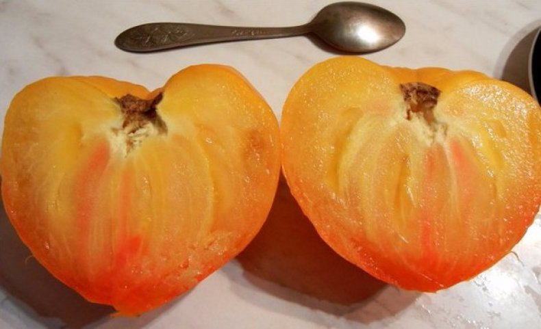 Κρέας, ζάχαρη, σχεδόν χωρίς κουκούτσια. Το έκοψα για σαλάτα, πεντανόστιμο! Μία ντομάτα ήταν αρκετή για μια σαλάτα για τρία άτομα.