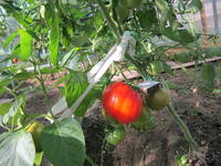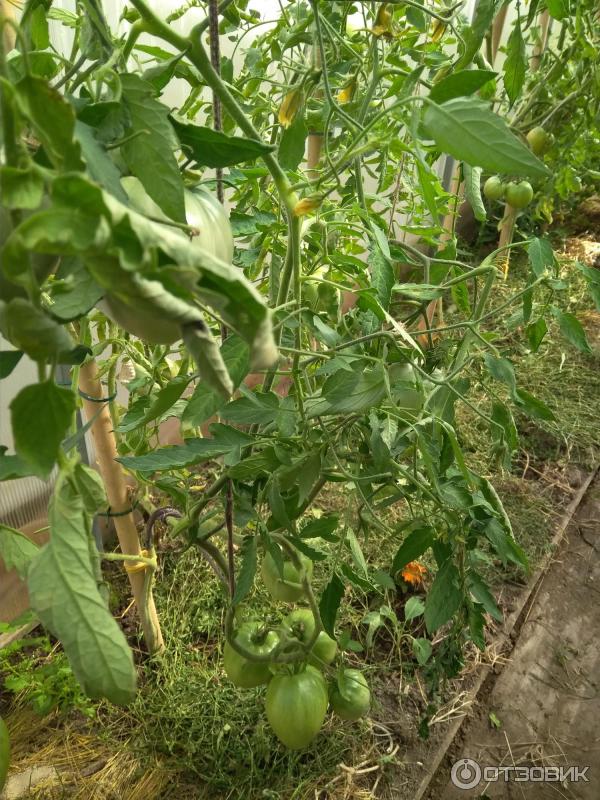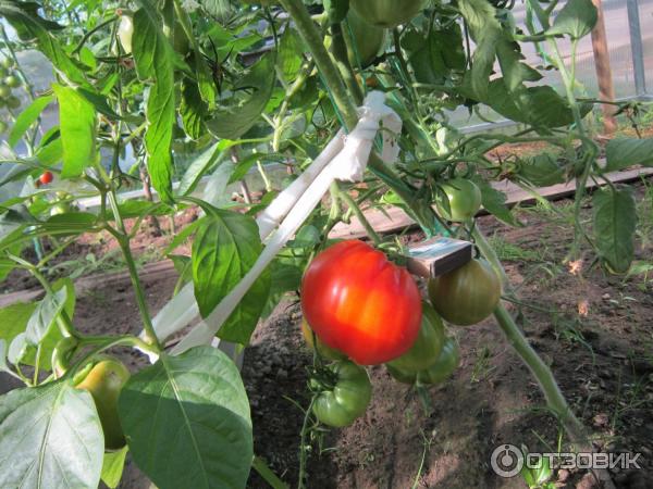 Η φωτογραφία δείχνει μέσα Ιουλίου, δεν υπάρχουν ακόμα ώριμα, είναι πραγματικά στα μέσα της σεζόν.Πέρυσι με εξέπληξαν ασυνήθιστες ντομάτες. Στην παρακάτω φωτογραφία, δύο καρποί διαφορετικών μεγεθών έχουν μεγαλώσει μαζί στα πλάγια.