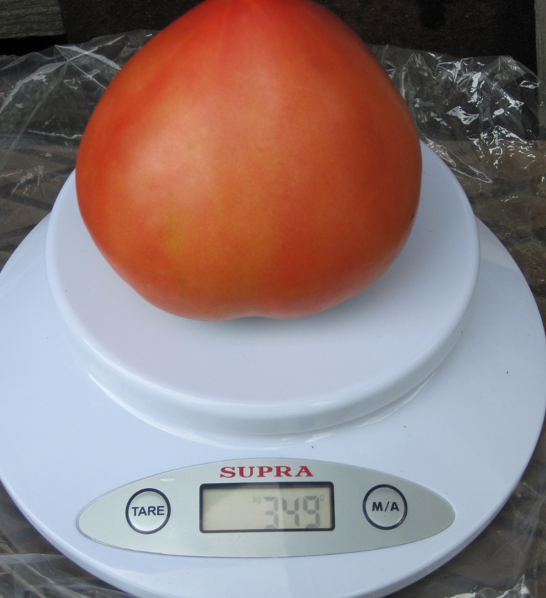 Εδώ είναι μια ντομάτα, όχι η μεγαλύτερη, ζύγισα, σχεδόν μισό κιλό.