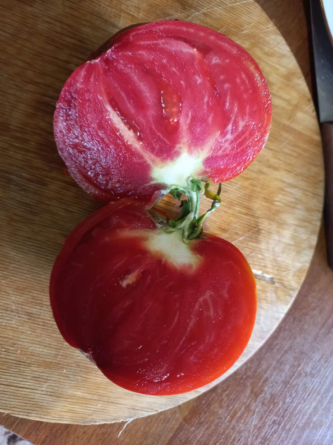 Μια μεσοπρώιμη απροσδιόριστη ποικιλία για θερμοκήπια. Κατάλληλη για σαλάτες. | Επίπεδο-στρογγυλό, μεγάλο, μεσαίου μεγέθους ραβδωτό, χαλαρό, κόκκινο, 400-500 γρ. Εξαιρετική γεύση. |