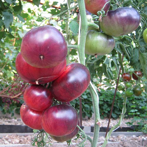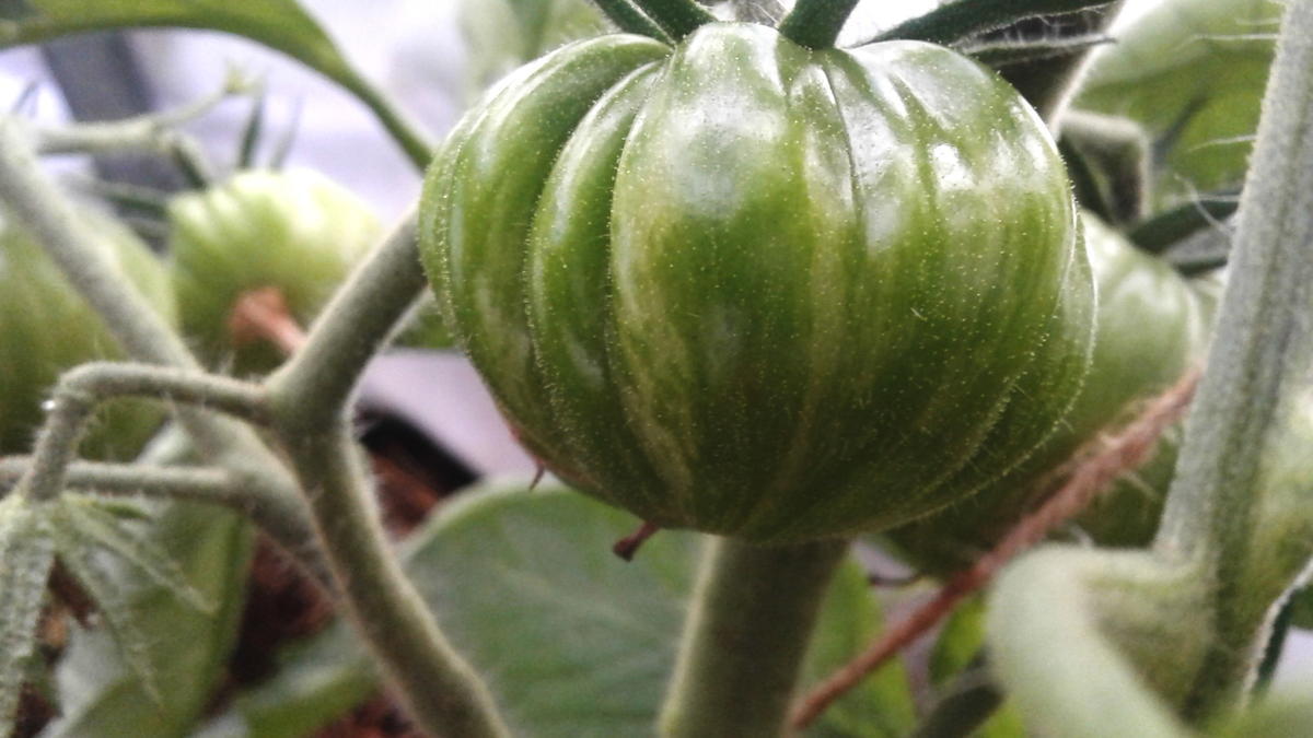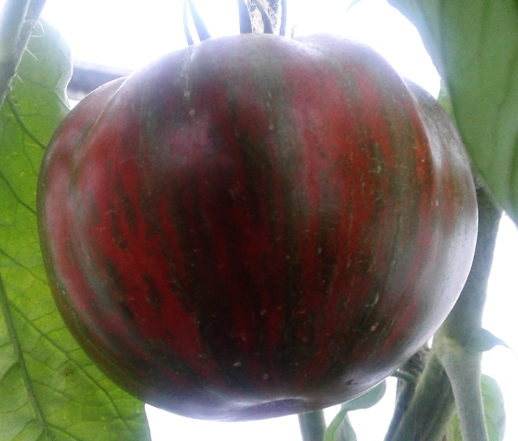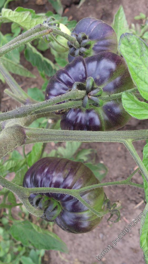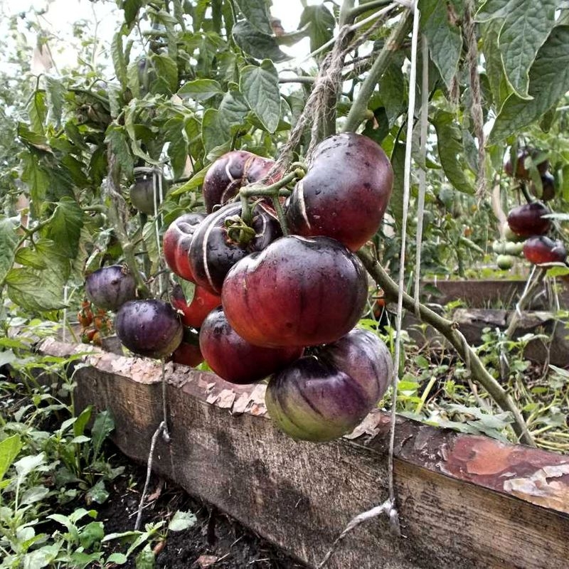 Παραδόξως, στην ίδια ακριβώς γωνία του θερμοκηπίου, όπου ο ήλιος ήταν λιγότερος (έκανα ένα θάμνο εκεί που ήταν πολύ μεγάλος για να χωρέσει, καθώς λυπήθηκα να τον πετάξω), οι ντομάτες ανέπτυξαν ένα πλούσιο μωβ χρώμα σχεδόν σε όλο τον καρπό, παρόλο που το μωβ θεωρείται γενικά δευτερεύον χρώμα όταν καλλιεργείται σε συνθήκες χαμηλής ηλιοφάνειας. Όταν ωρίμασαν πλήρως, προλάβαιναν τις αντίστοιχες ντομάτες και ήταν αδύνατο να διακριθούν από το πλήθος.