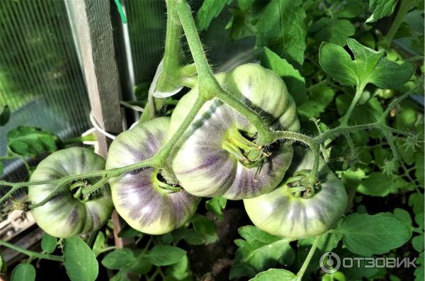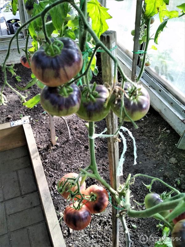 Φυσικά, τους ανέθεσα μια θέση στο θερμοκήπιο, αν και οι ντομάτες με ανθοκυανίνες στο χρώμα τους προτιμούν πολύ ήλιο, ο οποίος μπορεί να ληφθεί σε αφθονία σε ανοιχτό έδαφος.