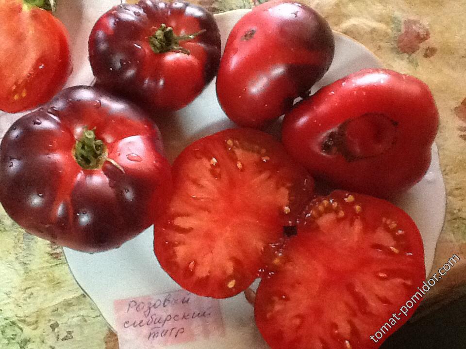 Οι σκέψεις μου για την καλλιέργεια μιας άλλης εξωτικής ποικιλίας ντομάτας είναι η Ροζ Σιβηρική Τίγρη. Όταν την είδα για πρώτη φορά, ήθελα αμέσως να φυτέψω μία, ειδικά επειδή είναι τοπική. Υπέθεσα ότι είχε εκτραφεί εδώ, αλλά τελικά προήλθε από τις ΗΠΑ, έχει το αρχικό όνομα Ροζ Σιβηρική Τίγρη και δημιουργήθηκε μέσω επιλεκτικής αναπαραγωγής. Κληρονόμησε τα βασικά της χρώματα από τους γονείς της, με αποτέλεσμα ένα εντυπωσιακά ελκυστικό χρωματισμό - μια ζωντανή σύνθεση από μοβ, σκούρο κόκκινο, κόκκινο και ροζ.