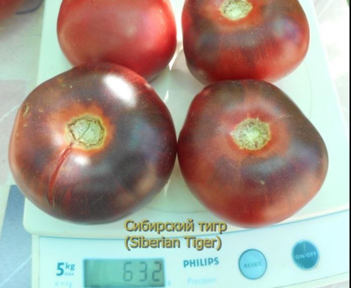 Ας ρίξουμε μια πιο προσεκτική ματιά στο πώς μοιάζει η ντομάτα Σιβηρικής Τίγρης.
