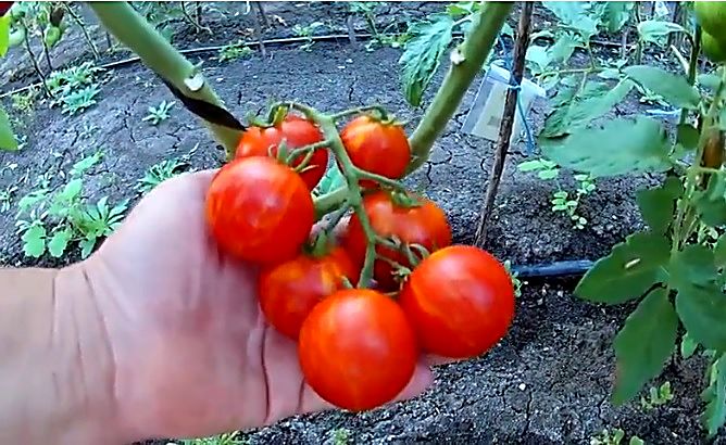 Μια απροσδιόριστη ποικιλία μέσης σεζόν για ανοιχτό έδαφος και θερμοκήπια. Απαιτείται διαμόρφωση σε μονά ή διπλά στελέχη. Κατάλληλο για σαλάτες, κονσερβοποίηση και κατάψυξη. | Στρογγυλό, μικρό, πυκνό, κόκκινο με πορτοκαλί ρίγες, 30-50 γρ. Εξαιρετική γεύση. |