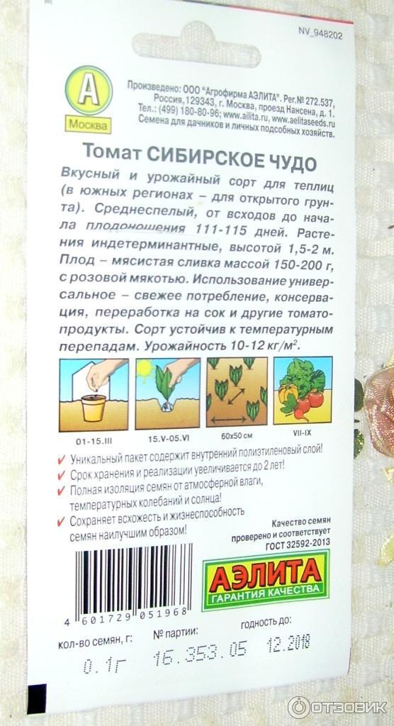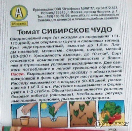 Πέρυσι, φύτεψα ντομάτες "Siberian Miracle", τις οποίες λάτρεψα για την παραγωγικότητά τους και την ευκολία φροντίδας τους. Προσαρμόστηκαν τέλεια στο κλίμα μας, με τις μεγάλες διακυμάνσεις της θερμοκρασίας.Αγόρασα σπόρους από την εταιρεία της Μόσχας "Aelita" στο Magnit για 10 ρούβλια. Αγόρασα σπόρους από αυτήν την εταιρεία αρκετές φορές πέρυσι και δεν με απογοήτευσαν ποτέ: φύτρωσαν γρήγορα και αναπτύχθηκαν πλήρως.