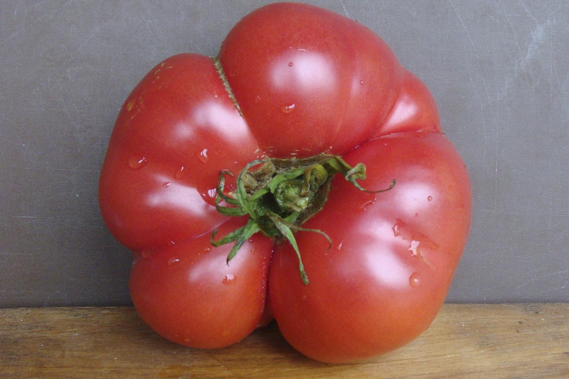 Πρώιμη, καθορισμένη, τυπική ποικιλία για ανοιχτό έδαφος. Απαιτεί πασσάλωμα και διαμόρφωση. Κατάλληλο για σαλάτες. Ανθεκτικό στην ξηρασία. | Στρογγυλό, λείο, ροζ, 140-160 γρ. Εξαιρετική γεύση. |