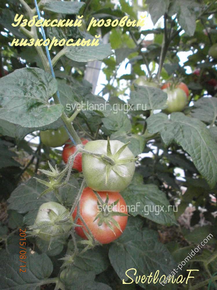 Η Σβετλάνα Ζουμαμπάεβα, μια άλλη κάτοικος της Τασκένδης, μοιράστηκε αυτούς τους σπόρους. Η ποικιλία Uzbek Pink είναι χαμηλής ανάπτυξης και αργής ανάπτυξης. Ο θάμνος είναι εύρωστος και σαν νάνος, με ζαρωμένα φύλλα που παρέχουν καλή σκιά από τον καυτό ήλιο. Είναι ανθεκτική στη σκιά. Οι ροζ, στρογγυλοί καρποί ζυγίζουν έως και 100 γραμμάρια, με παχιά, πυκνά τοιχώματα, είναι κατάλληλοι για τουρσί και φρέσκια κατανάλωση. Δεν ρίχνει τα άνθη του και φυτρώνει καλά σε ζεστό καιρό. Σπείρετε για σπορόφυτα 2-3 εβδομάδες νωρίτερα. Ύψος έως 70 cm στο έδαφος, έως 50-60 cm στο ανοιχτό έδαφος. Η περίοδος ωρίμανσης ήταν πιο κοντά στο τέλος, αλλά το καλλιέργησα στη σκιά.