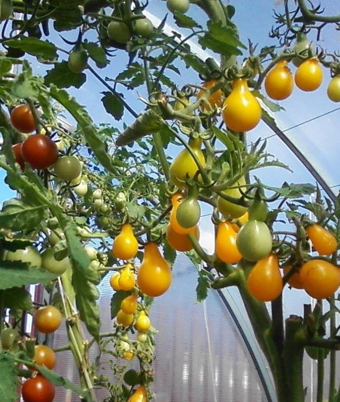 Οι κίτρινες ντομάτες είναι από τις αγαπημένες μου. Δοκιμάζω συνεχώς νέες ποικιλίες στη ντάτσα μου. Φύτεψα επίσης αυτήν την ποικιλία SEDEK - ντομάτες σε συστάδες, ψηλούς θάμνους ύψους 1,5 μέτρου. Δεν ωριμάζουν νωρίς και οι καρποί είναι μικροί, ίσως 15-20 ανά τσαμπί. Υπάρχουν κίτρινες ντομάτες που έχουν καλύτερη γεύση. η φλούδα τους είναι πιο χοντρή. Αυτές οι ντομάτες μπορούν να κονσερβοποιηθούν, αλλά οι κίτρινες ντομάτες έχουν ένα σημαντικό μειονέκτημα: είναι πιο μαλακές και πιο εύθρυπτες, και η σάρκα τους συχνά διαλύεται κατά την κονσερβοποίηση, γι' αυτό τις φυτεύω κυρίως για κατανάλωση. Μεταξύ των ποικιλιών με κίτρινο καρπό, έχω μια αγαπημένη - την KHURMA - την οποία καλλιεργώ πιστά εδώ και πολλά χρόνια. Φυτεύω επίσης μερικές μικρότερες ποικιλίες για την εγγονή μου.