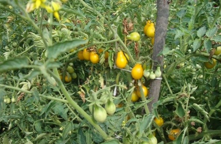 Μια ποικιλία μέσης σεζόν, κατάλληλη για ανοιχτό έδαφος και θερμοκήπια. Απαιτεί πασσάλους και διαμόρφωση σε δύο στελέχη. Κατάλληλη για σαλάτες, επεξεργασία σε προϊόντα ντομάτας, ξήρανση και κονσερβοποίηση. | Σχήμα δαμάσκηνου, λείο, κίτρινο, 25-50 γρ. Καλή γεύση. |