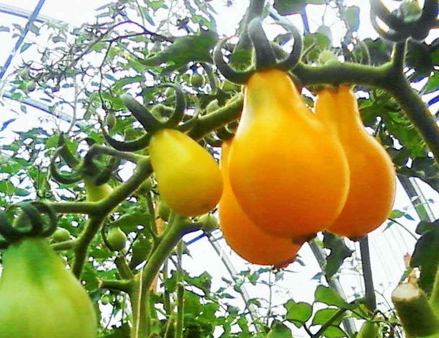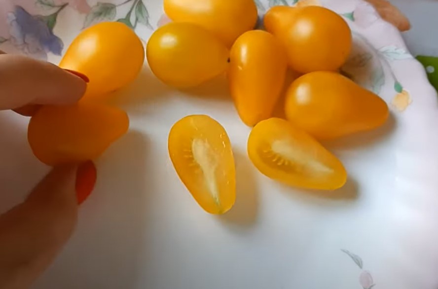 Τα φρούτα είναι μικρά, σε σχήμα αχλαδιού και κιτρινοπορτοκαλί. Η φλούδα είναι αρκετά λεπτή και τα ίδια τα φρούτα είναι μαλακά, ειδικά αφού μείνουν για λίγο. Το εσωτερικό είναι τρυφερό και ζουμερό. Είναι γλυκά και πολύ νόστιμα, με μια ξεχωριστή γεύση ντομάτας. Μου αρέσει πολύ αυτή η ποικιλία. Την προτείνω στους λάτρεις των ντοματίνια.