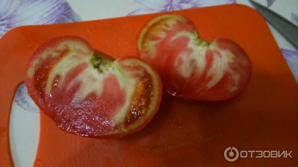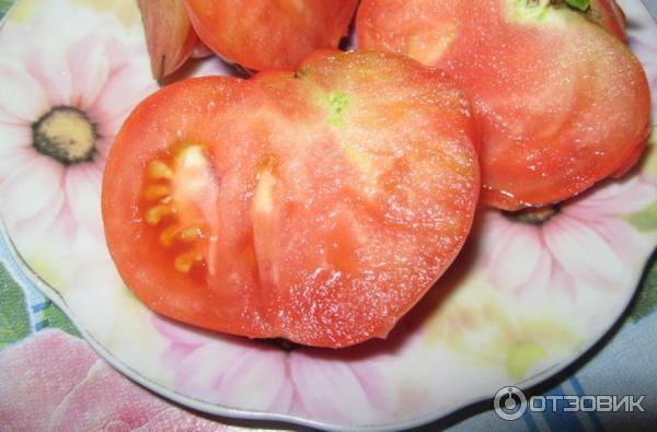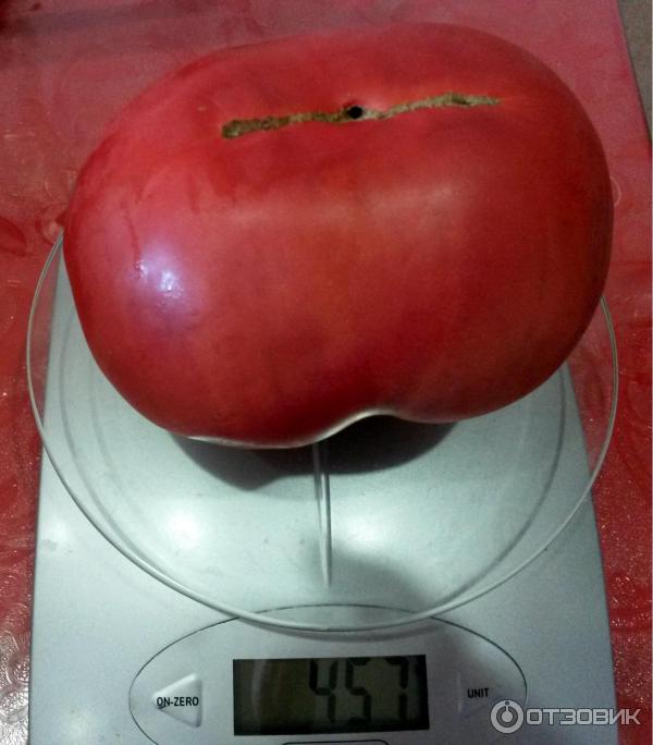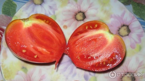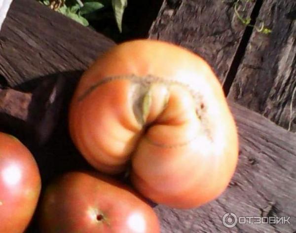 Τα φρούτα έχουν μόνο ένα μειονέκτημα: για κάποιο λόγο, συχνά σκάνε κοντά στο μίσχο, οι ρωγμές είναι βαθιές και όταν τρώγονται, αυτό το μέρος της ντομάτας πρέπει να κοπεί.