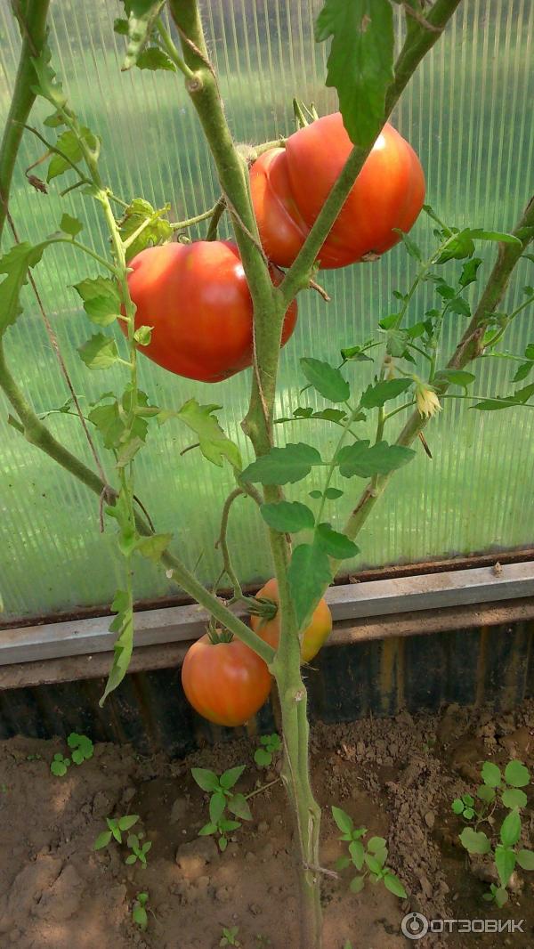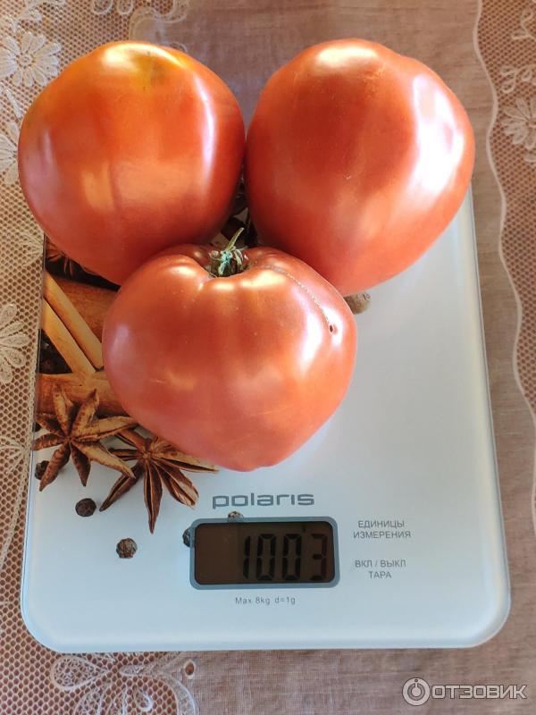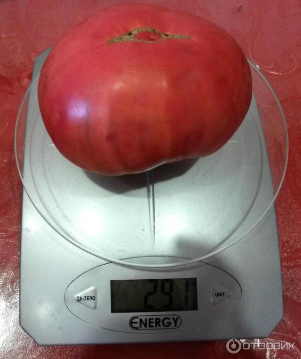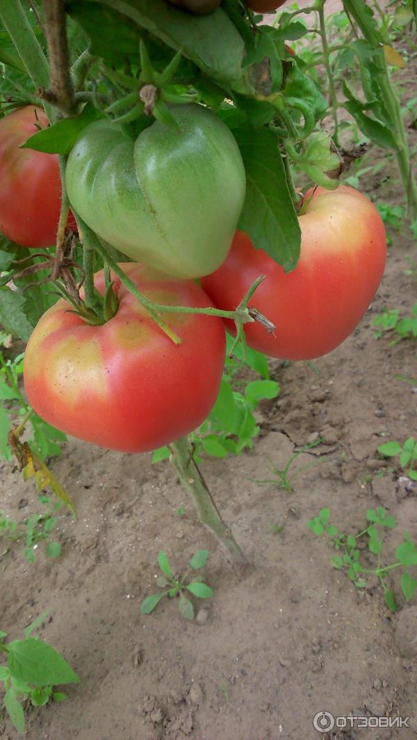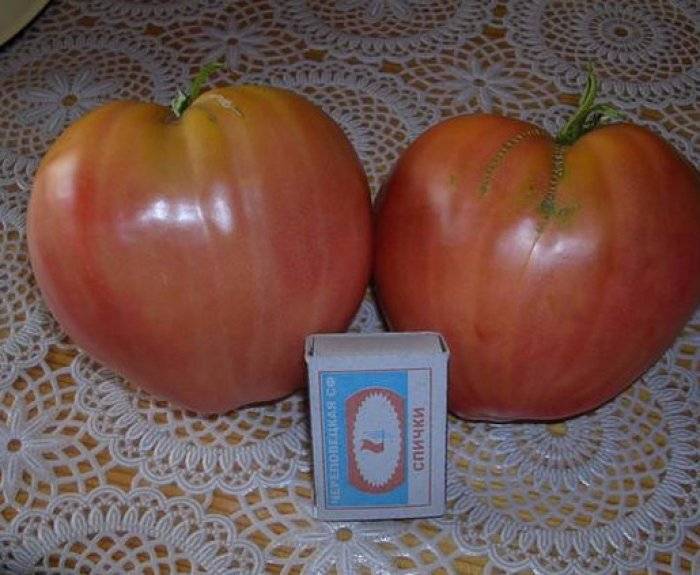Μια απροσδιόριστη ποικιλία μέσης σεζόν για ανοιχτό έδαφος. Απαιτεί πασσάλωμα και εκπαίδευση. Κατάλληλο για σαλάτες. Η απόδοση σε ώριμα, εμπορεύσιμα φρούτα είναι 75%. | Καρδιοειδές, ελαφρώς ραβδωτό, πυκνό, μεταφέρεται καλά, ροζ, 228-360 g (έως 600 g). Καλή γεύση. |