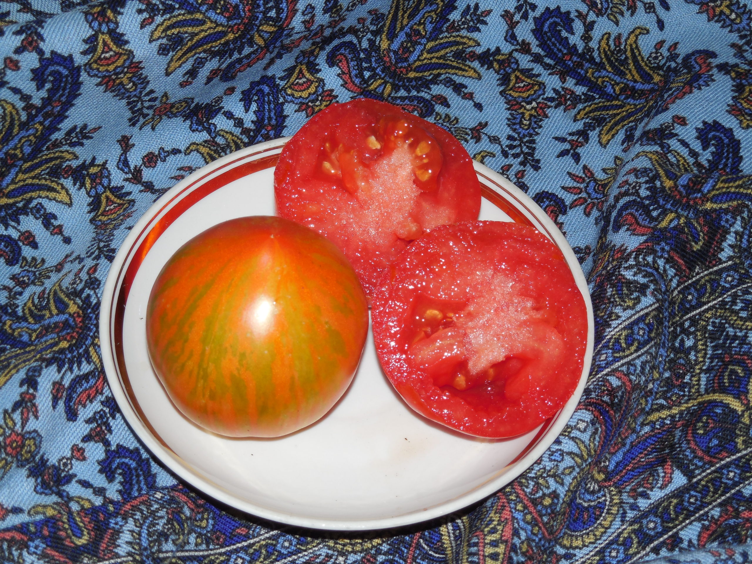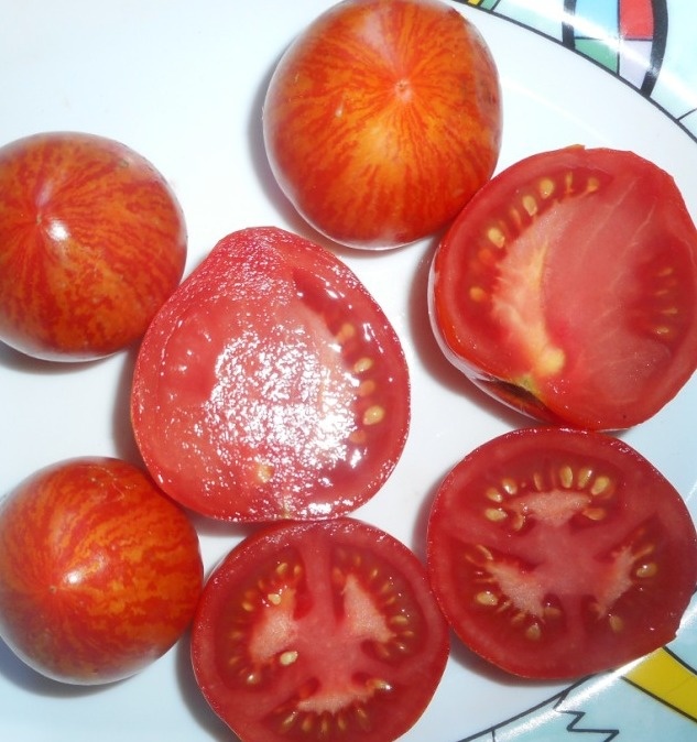 Είναι απόλαυση να τις βλέπεις. Μία από αυτές τις ντομάτες είναι αρκετή για μια σαλάτα για δύο άτομα! Είναι πολύ γλυκές, σαρκώδεις και ζουμερές. Δεν μπορείς να προσθέσεις αλάτι σε μια σαλάτα γιατί απελευθερώνουν αμέσως τους χυμούς τους και όλο το αλάτι τρέχει στον πάτο του μπολ, αφήνοντας τις ντομάτες γλυκές. Αυτή η ποικιλία δεν είναι κατάλληλη για κονσερβοποίηση, φυσικά, εκτός αν χρησιμοποιείτε χυμό ντομάτας, αλλά δεν μου αρέσει να τις σπαταλάω σε χυμό. Τις τρώμε έτσι απλά.