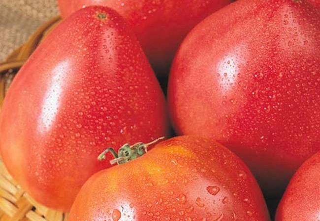 Μια πρώιμη απροσδιόριστη ποικιλία από Σιβηρικούς καλλιεργητές. Για σαλάτες, χυμούς και ζυμαρικά. | Καρδιοειδές, με ραβδώσεις, ροζ, 400-600 γρ. Εξαιρετική γεύση. |