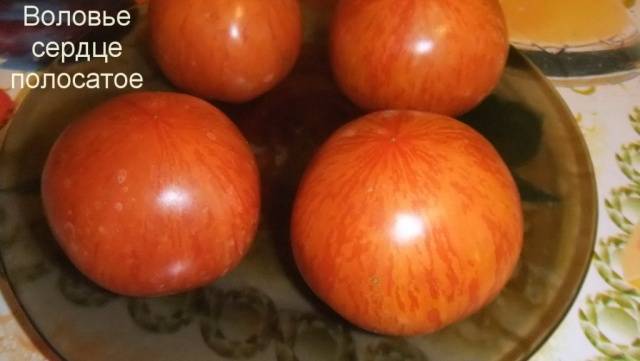 Το πιο εξωτικό υποείδος της ποικιλίας ντομάτας, Ox Heart, με ασυνήθιστους ριγέ καρπούς.