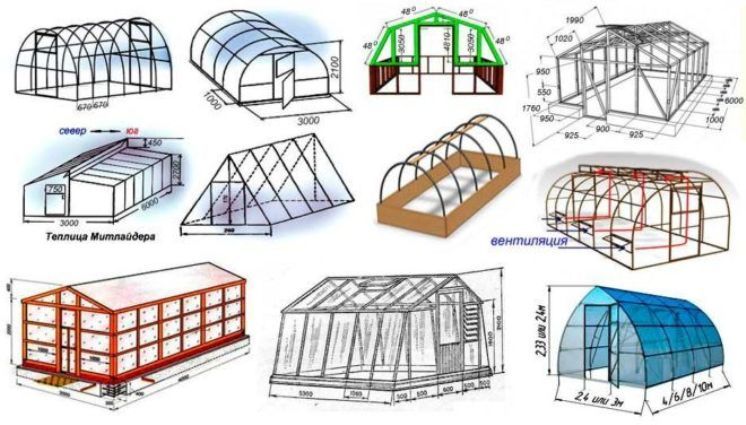 Σχέδια θερμοκηπίων και θερμοκηπίων κατασκευασμένων από σωλήνες προφίλ, διαγράμματα με διαστάσεις