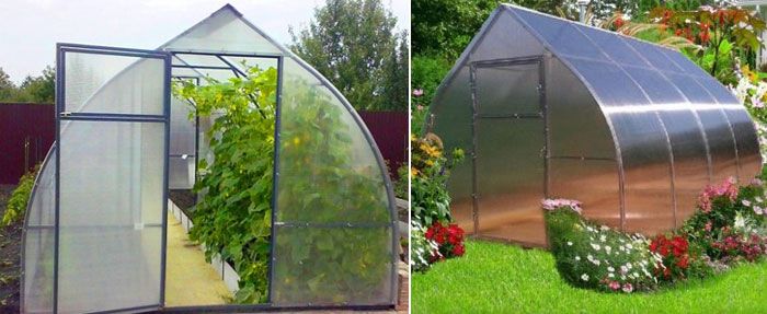 Η δυνατότητα επιλογής του βέλτιστου μεγέθους. Οι κατασκευαστές προσφέρουν μια μεγάλη γκάμα μεγεθών θερμοκηπίου, ειδικά όσον αφορά το μήκος. Ο σχεδιασμός επιτρέπει την αγορά πρόσθετων καμάρων για την οριοθέτηση του εσωτερικού χώρου. - Επίστρωση πολυανθρακικού. Το πολυανθρακικό είναι από καιρό ένα αγαπημένο προϊόν εκατομμυρίων κηπουρών. Είναι εξαιρετικά ανθεκτικό, εύκολο στην εγκατάσταση και διαθέτει ειδική επίστρωση που μπλοκάρει τις βλαβερές ακτίνες UV, παρέχοντας παράλληλα καλή θερμομόνωση και μετάδοση φωτός.