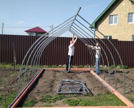 Προσδιορίστε μόνοι σας την απόσταση μεταξύ των τόξων. όσο μικρότερη είναι, τόσο πιο αξιόπιστο θα είναι το θερμοκήπιό σας.